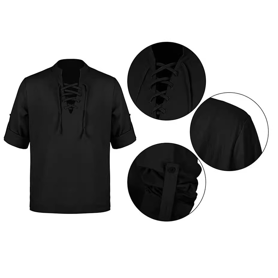 2025 中世メンズストラップラペルレトロシャツランタンスリーブドラマステージウェアルーズトップシャツ男性