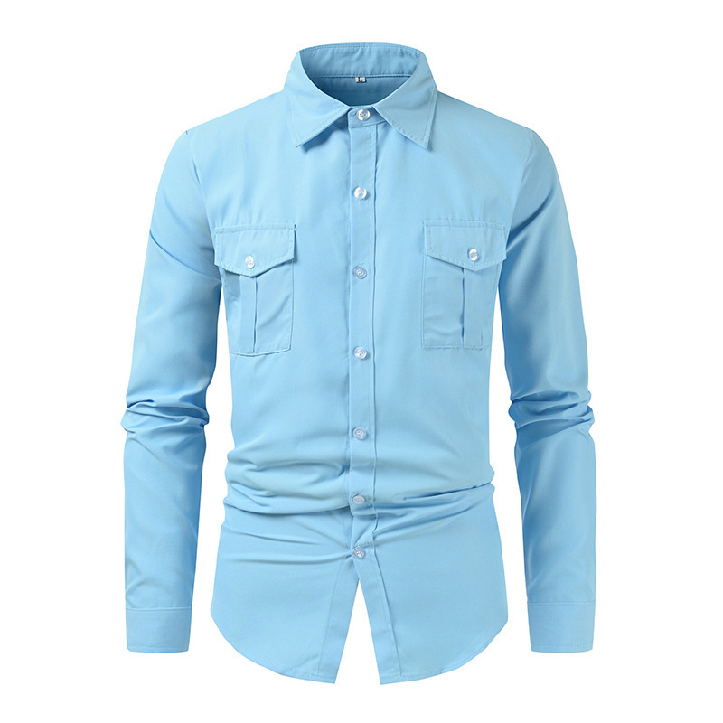 クロスボーダー貿易 AliExpress メンズ マルチポケット トップス 2023 メンズ カジュアル ラペル 長袖 ポケット シャツ