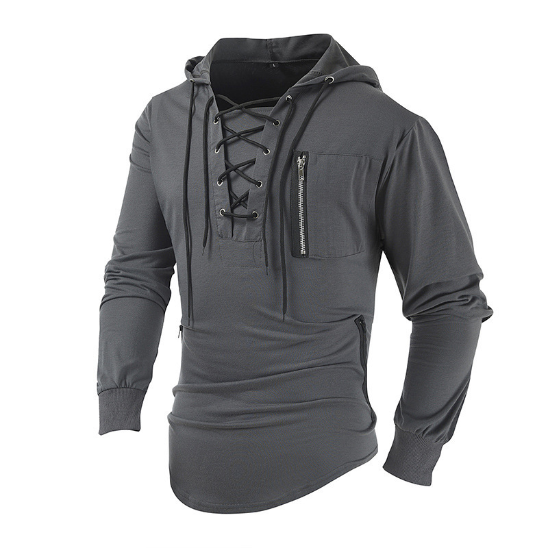 貿易メンズプルオーバーフード付きスウェットシャツ無地レースアップスポーツカジュアル春秋服フード付き DL24