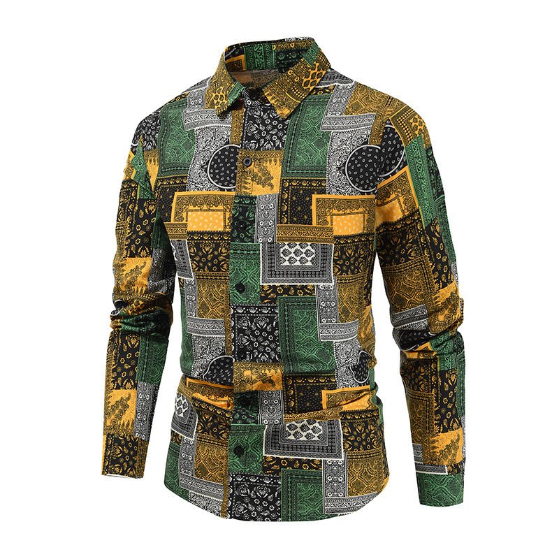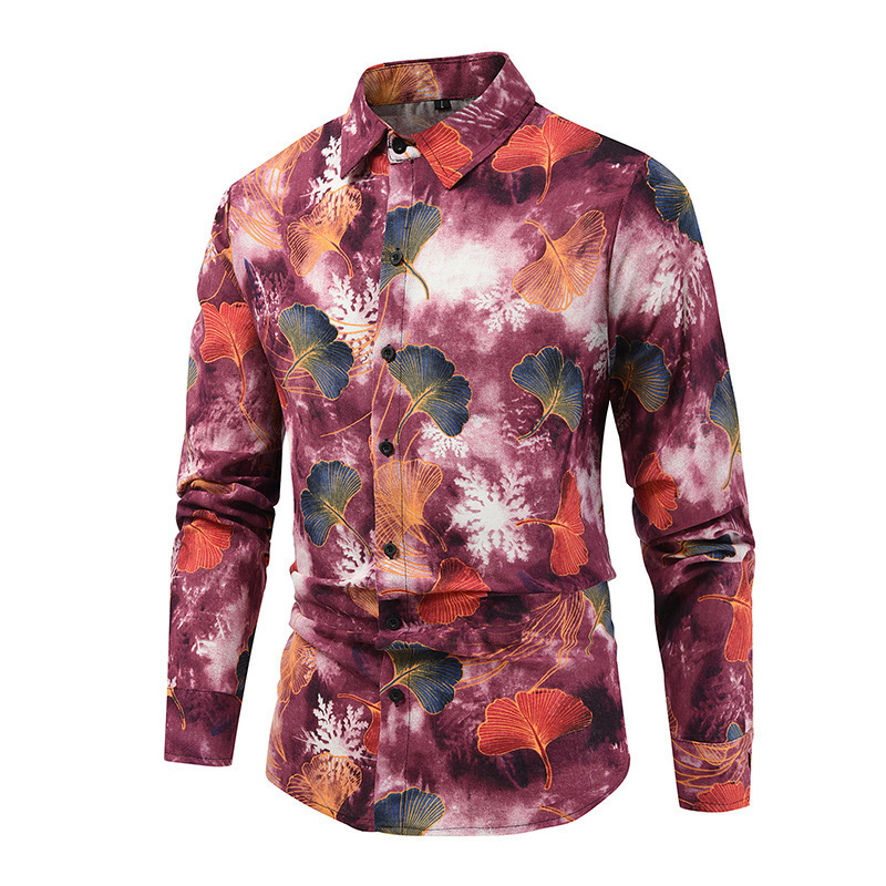 2024秋の新商品男性カジュアル長袖花シャツヨーロッパサイズプリント長袖カーディガン男性シャツシャツ
