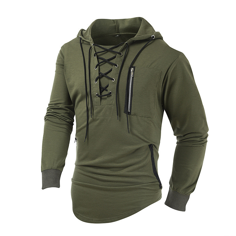 2025 新メンズ春秋パーカー無地レースアップジッパーポケットスポーツストリートホットスタンピングスウェット