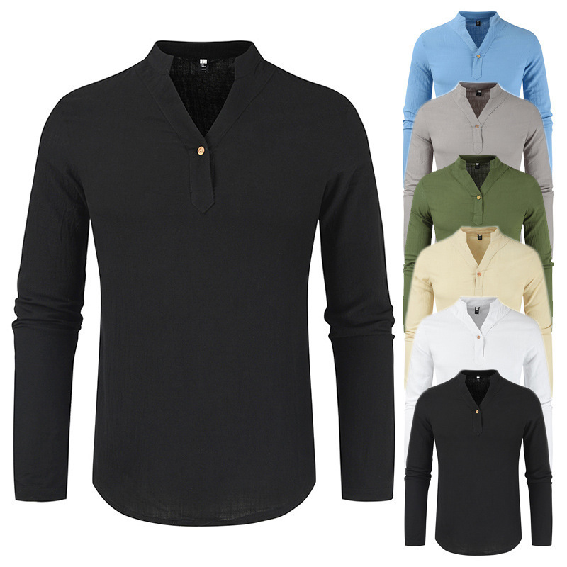 2024新型男性対外貿易青年vネック純色カジュアルゆるい薄手長袖シャツdl 543-特P25