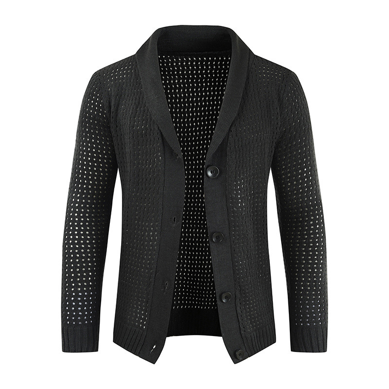 2024男性秋の新型対外貿易単列ボタン透かし彫り鉤花ニットカジュアルセーター男性大サイズセーター