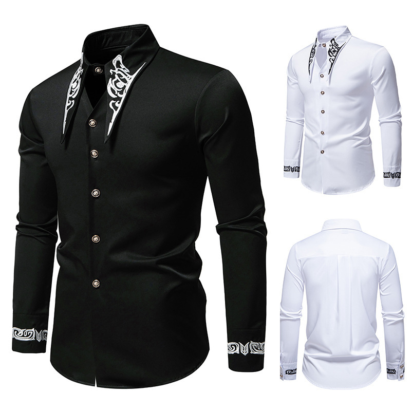 2024秋の新型アマゾン男性ヨーロッパ風花卉箔押し三角襟長袖シャツA386P40