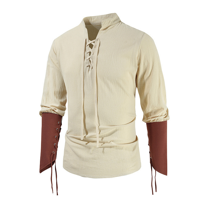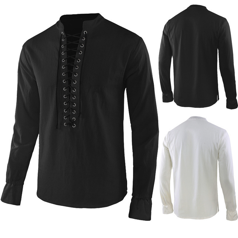 アマゾンebay中世レトロ純色メンズゆるいストラップ襟シャツスチームパンク王子が服を演じる