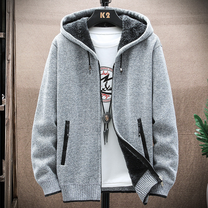 男性のカーディガンのセーターは24秋冬の新型の外国貿易の帽子のニットのカシミヤの厚いセーターのコートのカジュアルな紳士服です。