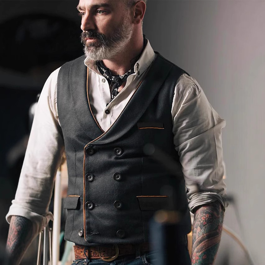 2025クロスボーダー希望ヨーロッパとアメリカの大きいサイズVネックオリジナルスーツベストカジュアルダブルブレストジャケットベストトレンド在庫あり