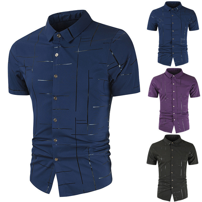 2024外国貿易の新型クロスボーダー夏シルク綿男性カジュアルストライプシャツ半袖シャツDLCS05