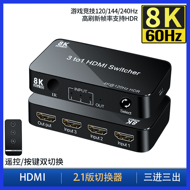 HDMI スイッチャー 3 入力 1 出力 バージョン 2.1 8K60Hz ビデオ コンピューター ノートブックに最適 マルチインターフェース 8K 高解像度
