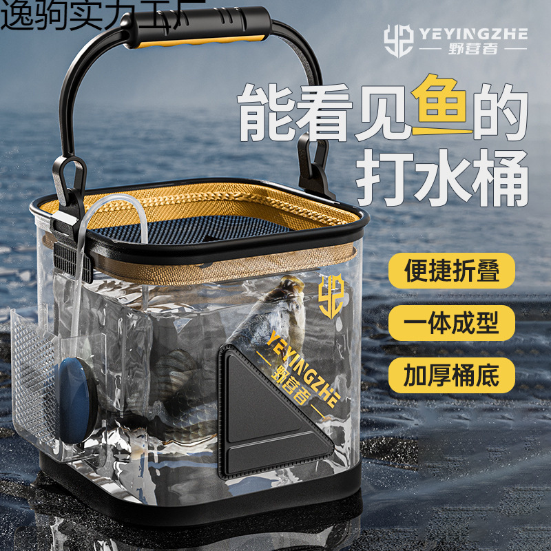 釣り用透明水バケツ、魚バケツ、魚保護バケツ、釣りバケツ、ポータブル折りたたみ魚バケツ、魚箱、ルアー活魚バケツ..