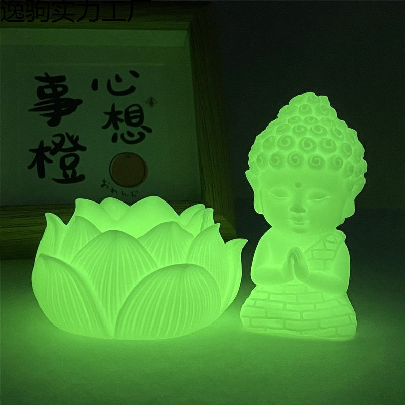 夜光光る赤ちゃんの仏陀蓮の花の台のq版の置物の大きい日の禅の意は仏陀の車の夜光の赤ちゃんの置物に座ります。
