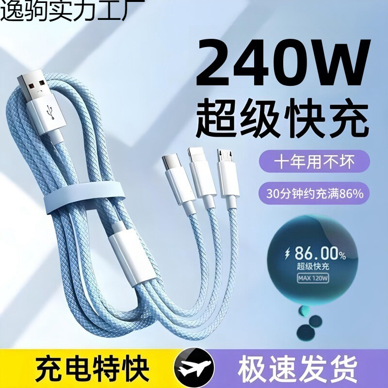 240Wフラッシュ充電編組データ線はリンゴ華為安卓粟快充線三合一モップ三充電線を適用する