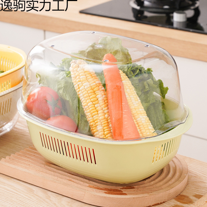 果物を水洗いして野菜を洗います。多機能の食器と家庭用の台所で水を切ります。