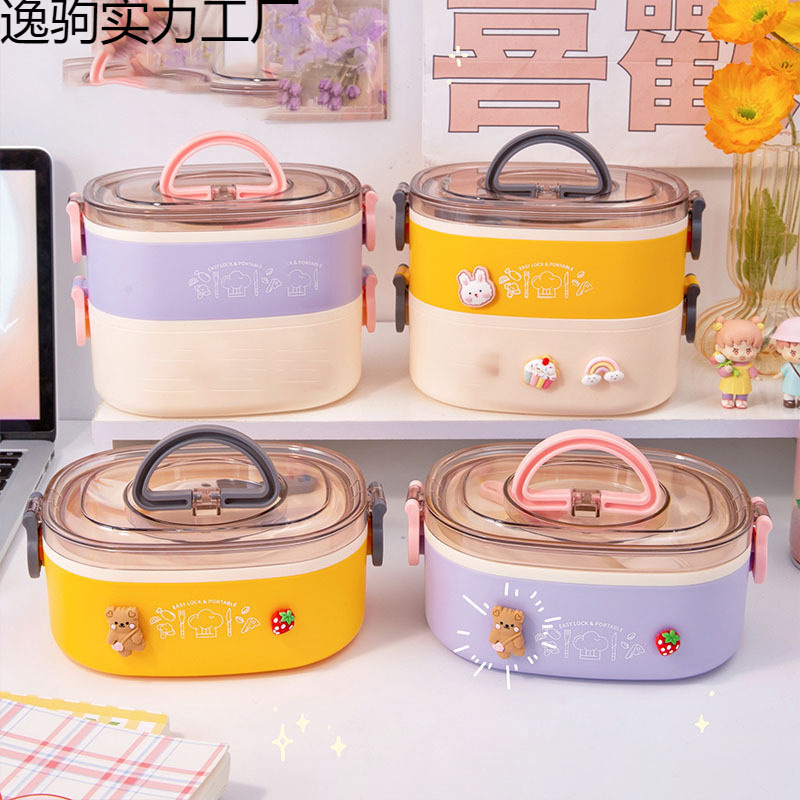 INSネット赤楕円二重ステンレス弁当箱学生弁当箱携帯成人食堂オフィス保温弁当箱.