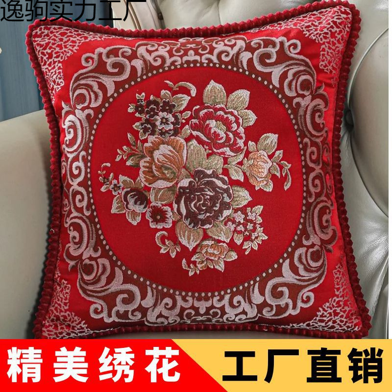 中国式刺繍ヨーロッパ式客間実木ソファークッション抱き枕カバー枕ベッドの大きな背もたれ自動車腰枕の窓