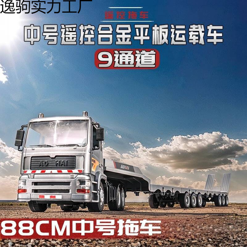 リモートコントロールフラットベッド牽引トレーラー半挂大型トラックおもちゃ男の子子供リモートコントロール掘削機エンジニアリング車両車