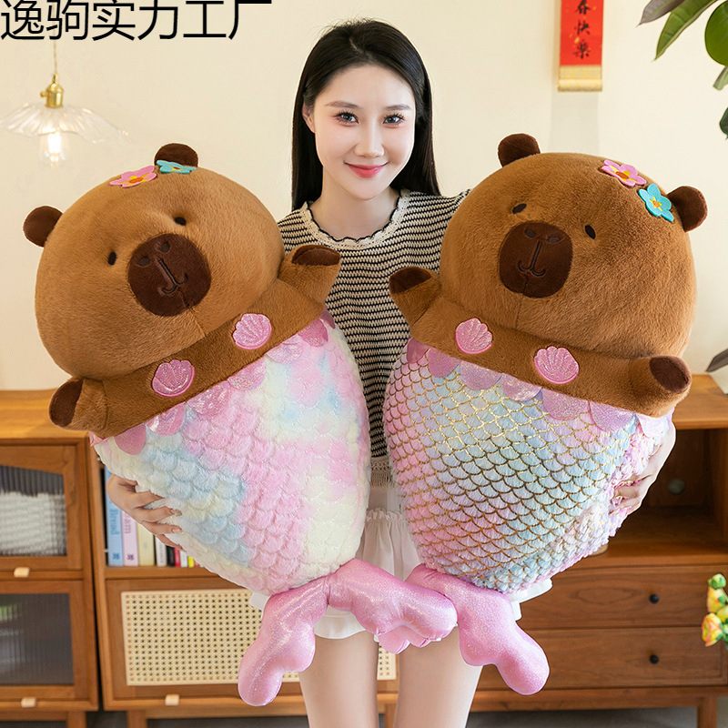 爆発的な人魚のカピバラのぬいぐるみのぬいぐるみネットの赤いカピバラは彼女の子供の誕生日の子供を枕にします。