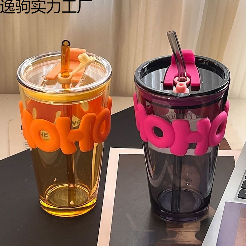 ウォーターカップ、ガラスカップ、インスタイル、見栄えの良い学生レター、大容量コーヒーオフィスジュースストローカップ。