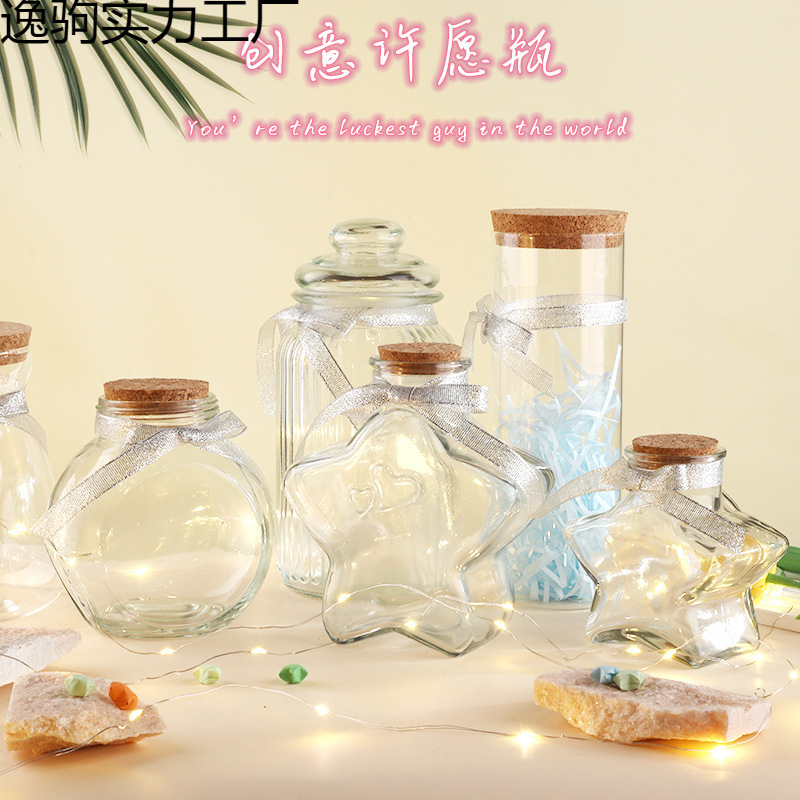 ガラスのウィッシングボトル コルク シェル サンド ドライフラワー ストレージボトル レインボーボトル ドリフト空ボトル ラッキースター折り紙..