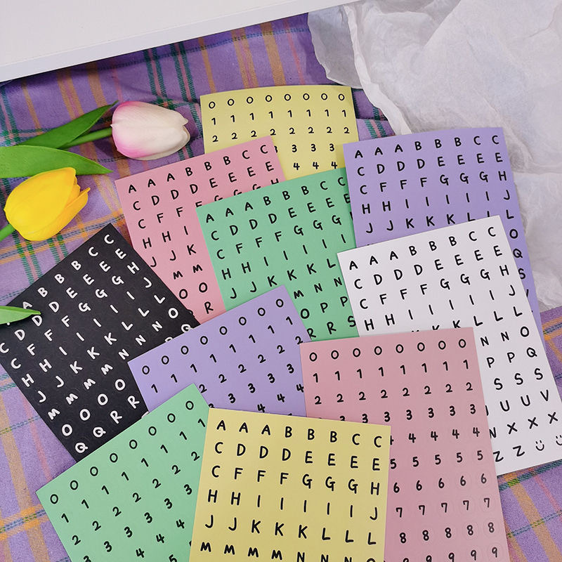 韓国インスタ風塩系カラーラウンド英字アルファベットシールカットフィルム手帳素材DIY数字飾りシール