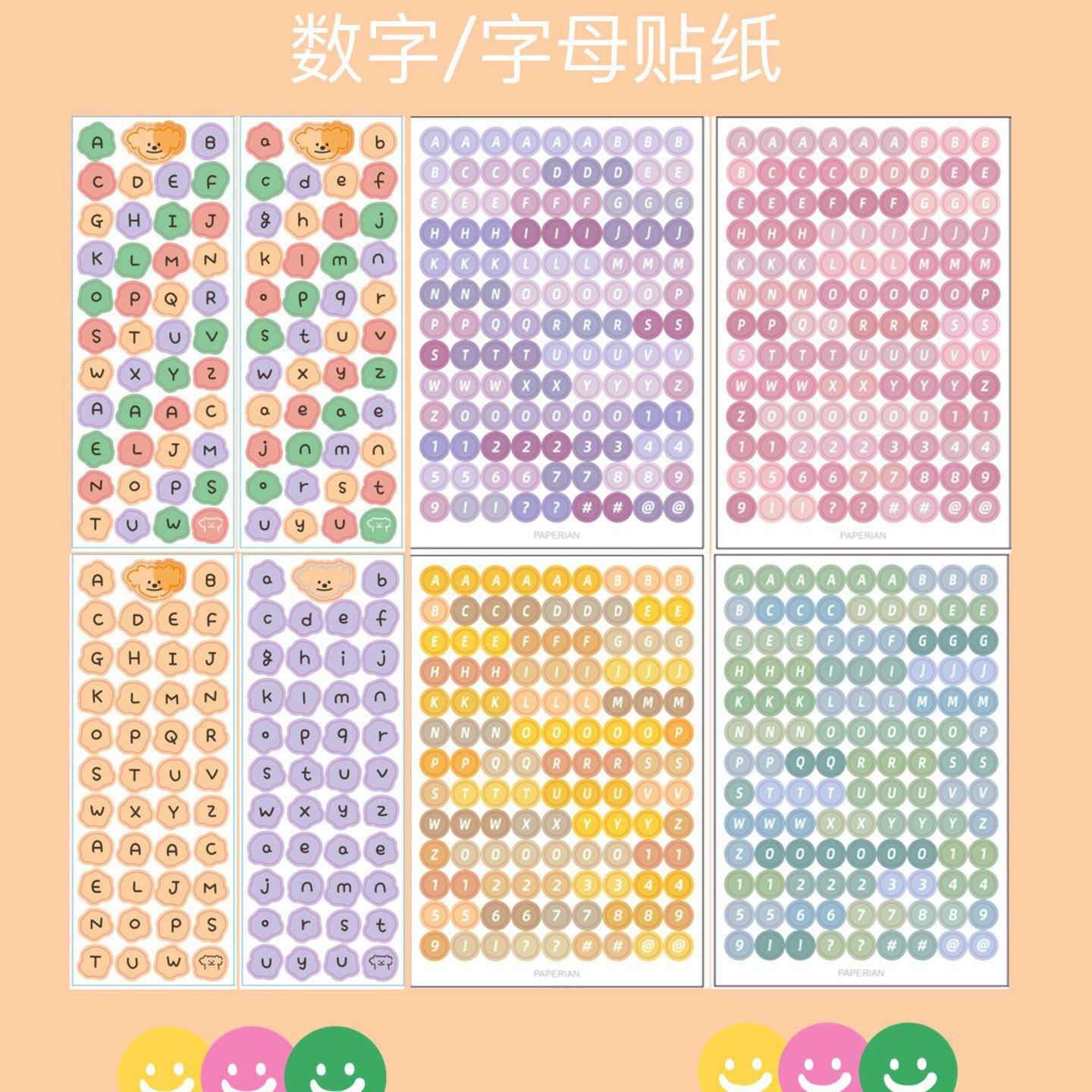 キャンデー系カラー英字数字手帳ステッカーins自己粘着手帳素材装飾diyステッカーa 0