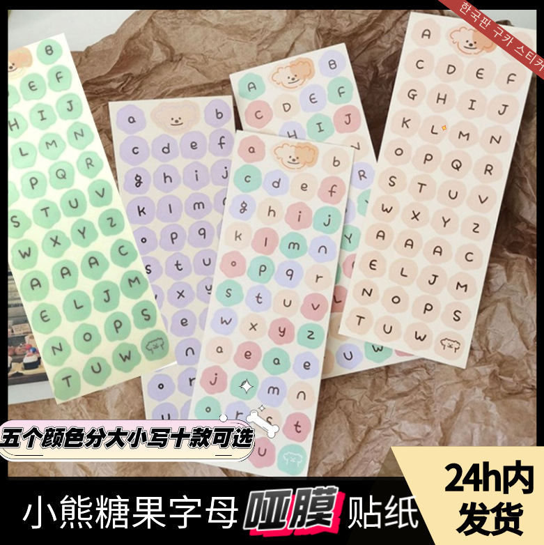 10色韓国版ins風熊英語アルファベット大文字と小文字のシール手帳カード素材カラーシールa137