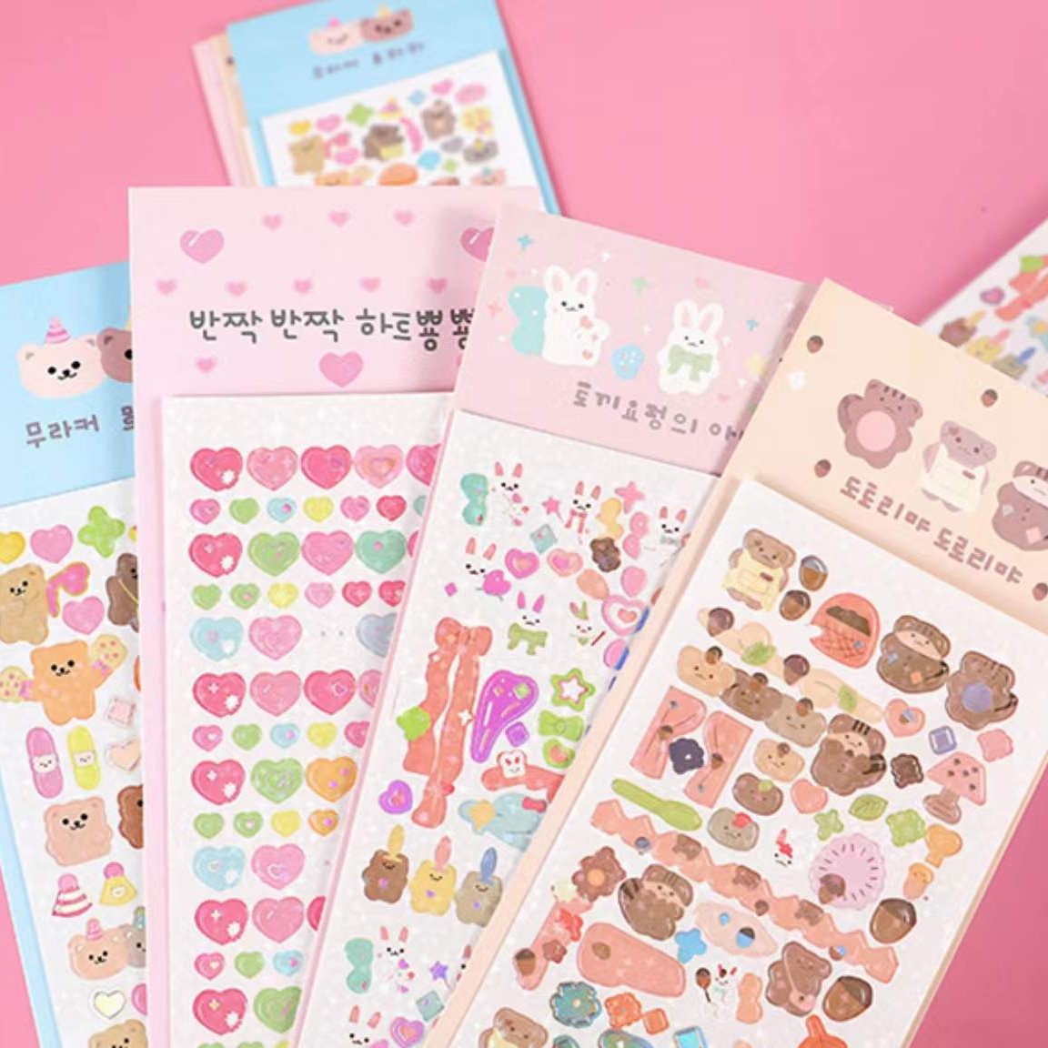 韓国版ins張熊小兎レーザーカードシールかわいい風 _ シールアニメかわいい素材a11