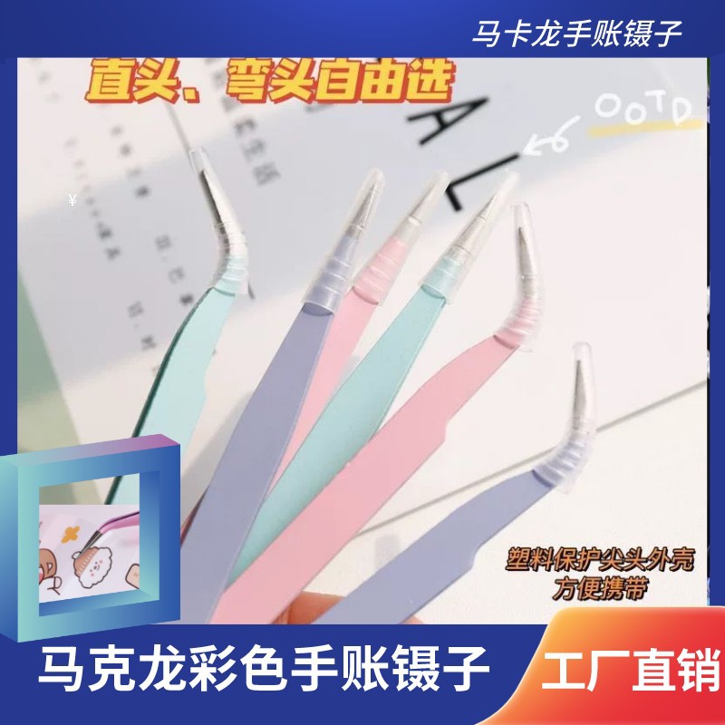 マクロンカラー手帳ピンセット鈍い頭ステンレスピンセット肘ストレートエッジ先端文房具ピンセット手帳シール