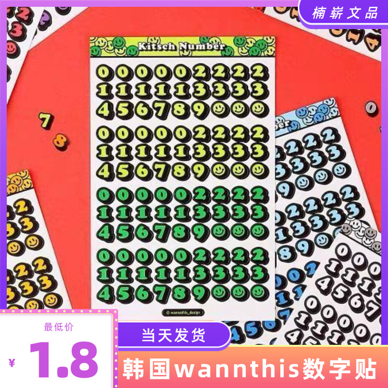 韓国wannathisカラー英語アルファベット数字装飾シール手帳追星タイル素材6枚入り