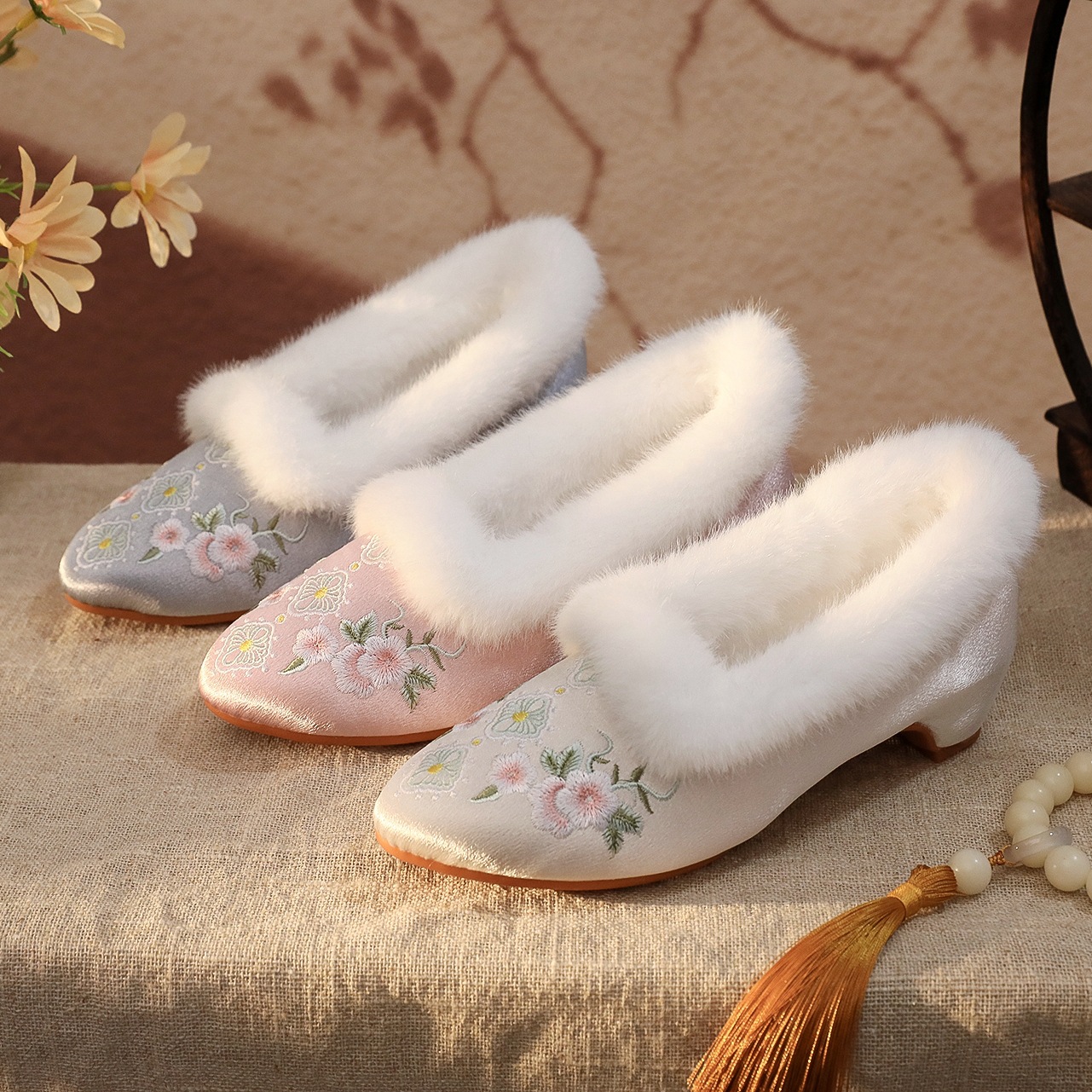 【晴柔】2024冬の新型ベルベット保温刺繍靴古風サテン漢服靴国風刺繍綿靴