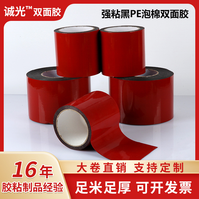 発泡両面テープPEフォーム赤色フィルム黒色強粘着耐熱耐荷重自動車ネームプレート額縁固定マザーロールメーカー切断