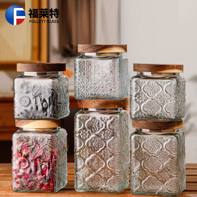 ガラス密封缶防湿防漏蜂蜜瓶ガラス貯蔵タンク五穀雑穀収納ケース茶葉缶卸売り
