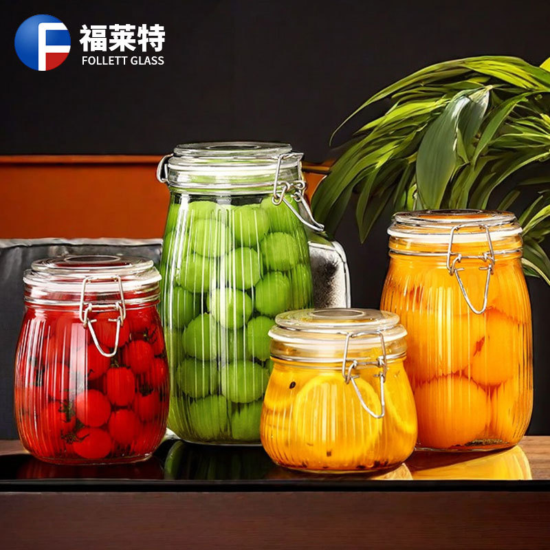 家庭用雑穀厨房貯蔵タンク透明バックルガラス密封缶ボトル保存キムチつぼ缶