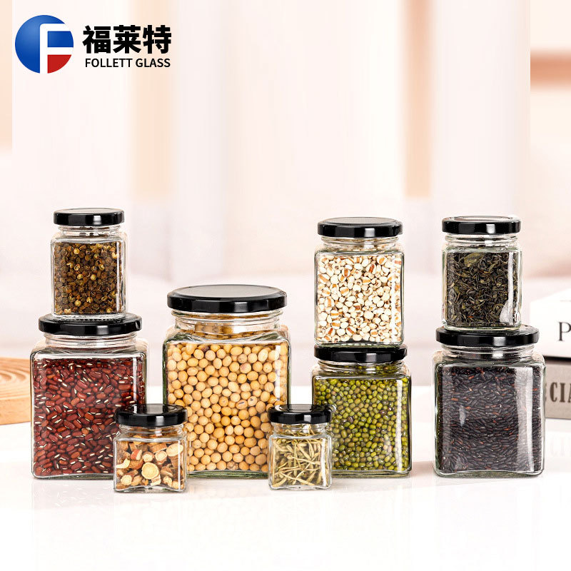透明ガラス貯蔵タンク四方ガラス味噌汁瓶透明蜂蜜瓶ジャム分注瓶カプサイソース缶瓶