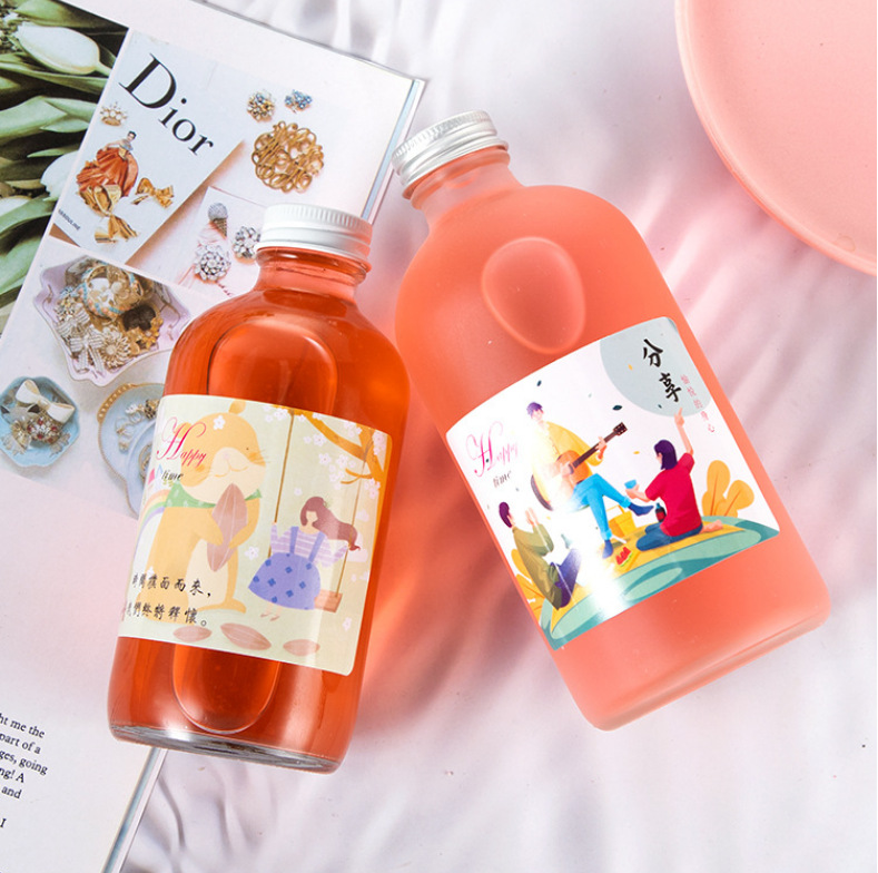 ガラス果実酒瓶白酒瓶1000ml透明ボストン瓶蒙砂果実酒瓶ウォッカ酒瓶ロゴ可能