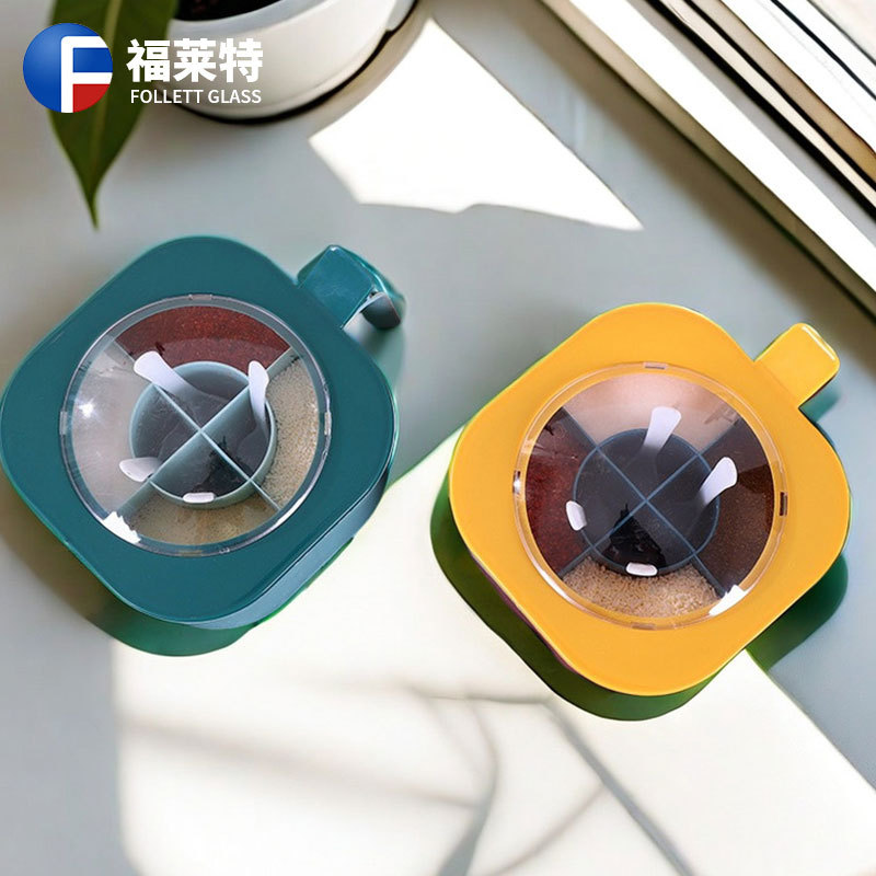 クリエイティブ調味料箱四格一体キッチンpp収納箱味の素家庭用調味料塩缶砂糖調味料缶キャンディー箱