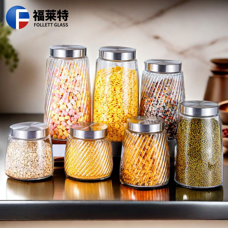 卸売りガラスステンレス蓋貯蔵缶ガラス密封缶携帯茶葉缶キッチン収納缶ガラス