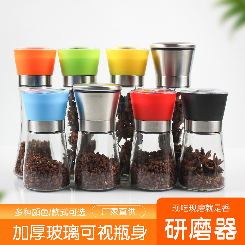 黒胡椒研磨器手動研磨器ステンレスガラス瓶調味缶家庭用研磨瓶香料研磨機