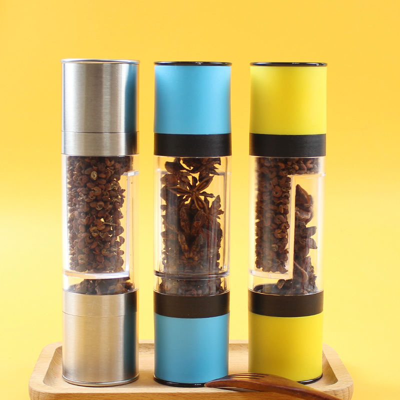 ステンレス製両頭グラインダー 手動黒胡椒クミン粉調味料ボトル 屋外バーベキュー用山椒海塩グラインダー