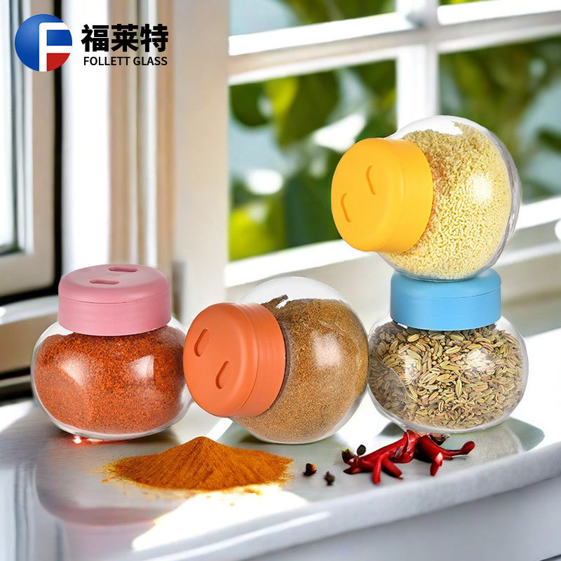 卸売り密封回転蓋ガラス調味料瓶透明ガラス散布缶調味料分注瓶大孔調味料瓶