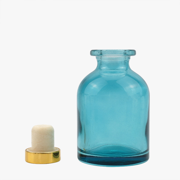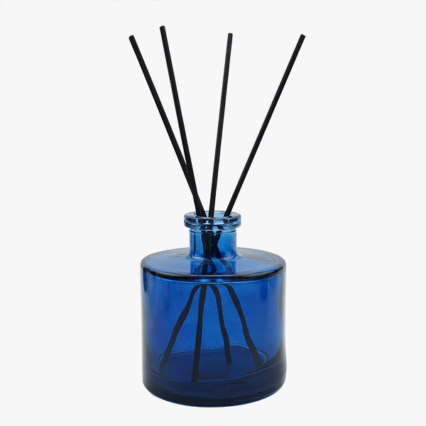 メーカー卸売り円柱形無火アロマボトル200mlガラス空ボトル青帯藤条厚い底