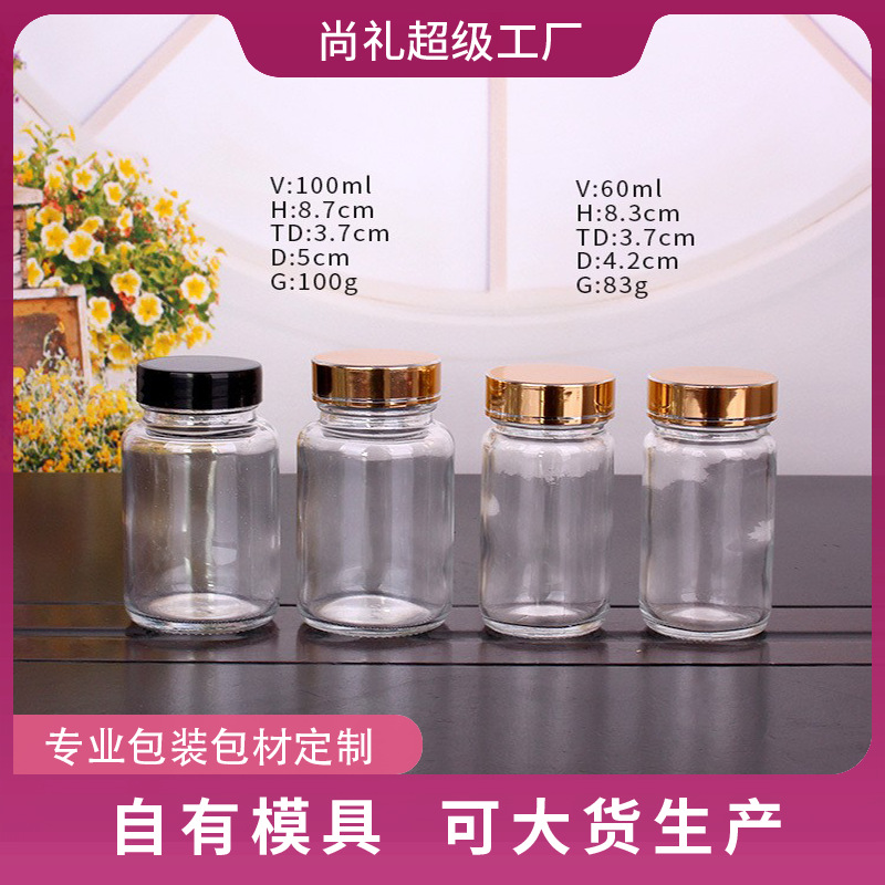 メーカー卸売りスポット冬虫夏草ガラス瓶100mlブリキ石gok空瓶枸杞カプセル瓶