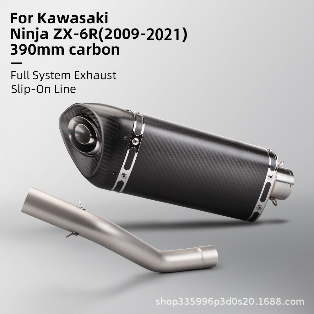 オートバイ排気改造 ZX-6R ステンレススチールスイングミッドセクション + 470 ラウンドテールビッグヘックスカーボンファイバーテールセクション 09-20
