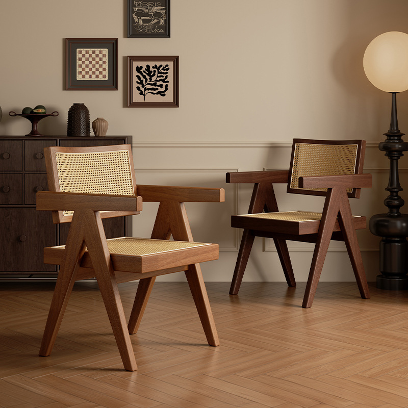 家庭用籐ダイニングチェア新しい中世スタイルの無垢材の椅子ホームリビングルームレジャー背もたれ椅子ホワイトワックス無垢材のティーチェア
