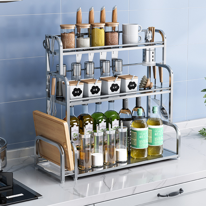 ステンレス鋼のキッチン調味料収納ラックカウンタートップ多機能ナイフホルダー調味料油塩ソース酢ボトル収納ラック