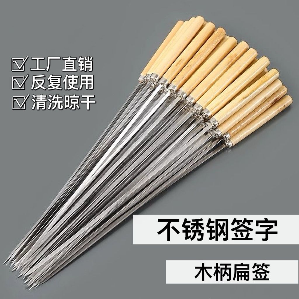 木製ハンドルフラットスティックステンレス鋼バーベキュースティックラム串バーベキューツール串用品スティックアクセサリーバーベキューニードル