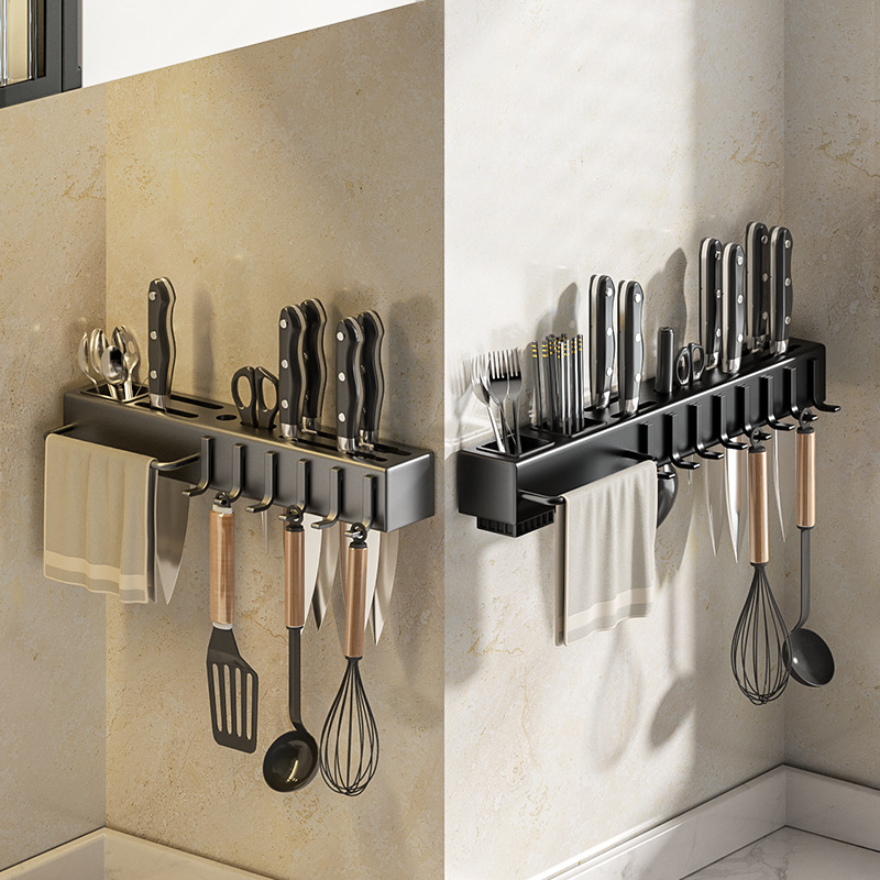 キッチン多機能壁掛けナイフホルダー収納ラックパンチフリー家庭用品大型ナイフと箸かご一体型収納ラック