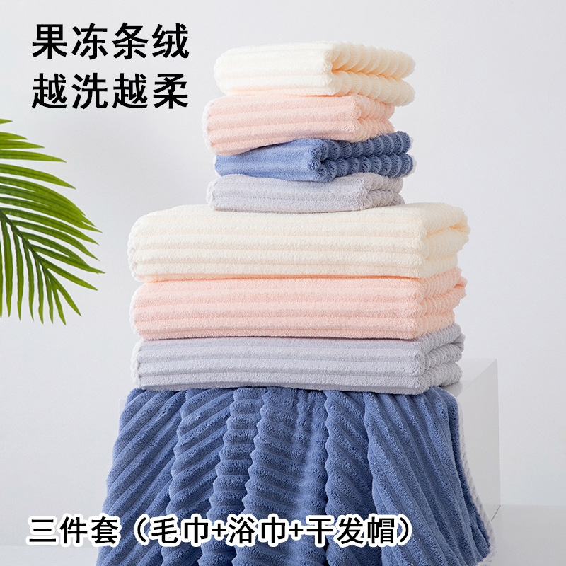 雲格サンゴ絨毛バスタオル厚手タオル女性セット無地純色ビーチタオル家庭用吸水ドライキャップ