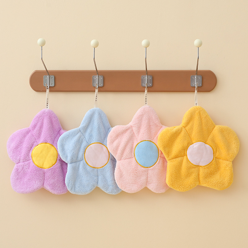 ギフトタオル吊り式家庭用キッチントイレサンゴベルベット子供かわいい吸水花拭きタオル
