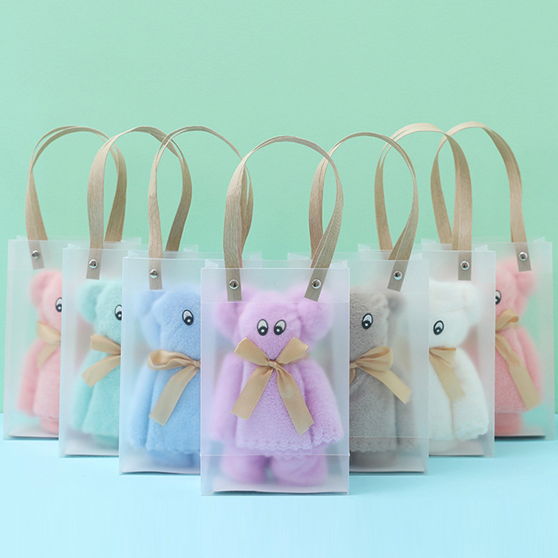 手拭きタオルかわいいお土産ベアータオルサンゴタオル熊卸売りプレゼント手提げ袋子供タオル